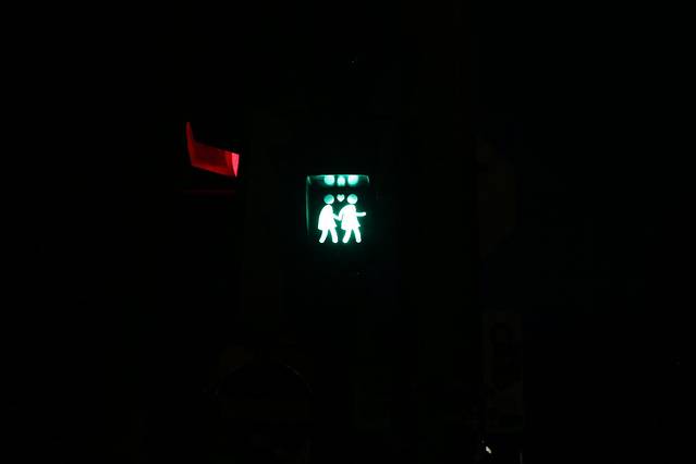 国家大剧院门口的交通信号灯,男生跟男生,女生跟女生,是为了表达支持同性恋而设置的。