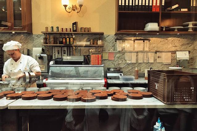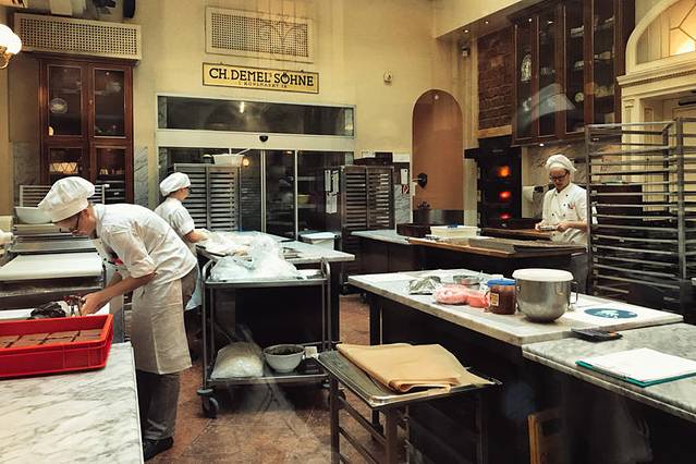 其实理论上来说,Demel更是一个甜品店,它以款式多样精致可口的糕点见长。店内有一块装潢华丽的区域出售包装精致的糕点,透明的操作间向慕名而来的客人们展示着糕点的制作过程。