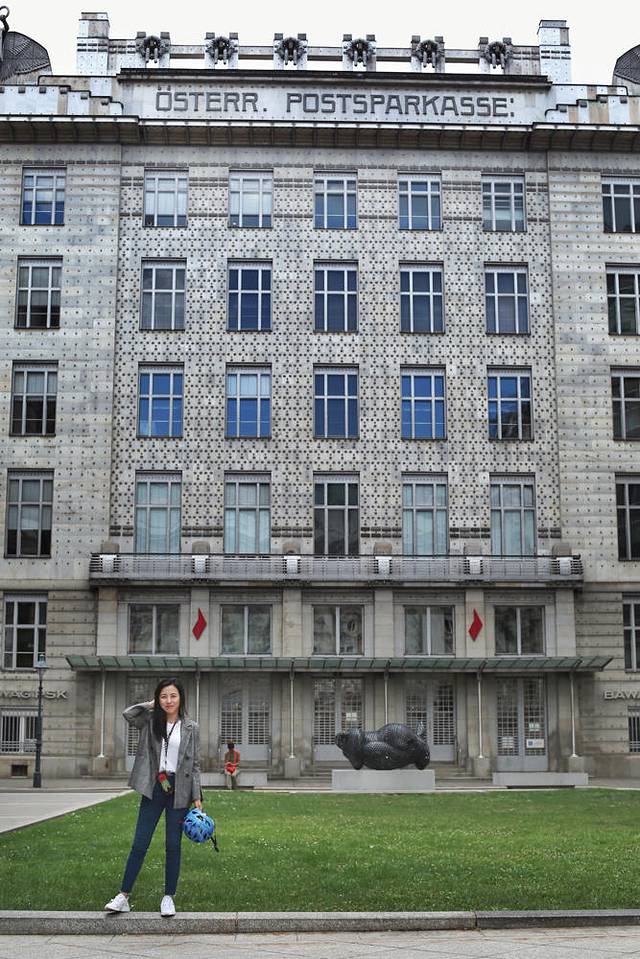 一点不夸张,站在银行内部,我相当震撼。因为这是1904年,一百多年前的设计啊!瓦格纳说,建筑师的培养是一生的事,往往要三十岁才能独立实践,四十岁才能达到事业上的成熟。设计这个银行时,他已年过花甲。一个熟透了的建筑师脑中竟有如此创新的、简洁的、现代的设计理念。你走出这个银行大门,看看它正对面的那栋建筑,修建时间比这个银行还晚,但却依然是一身欧洲遍大街的中庸风格。所以,说这个银行是现代建筑史的里程碑,一点也不为过。