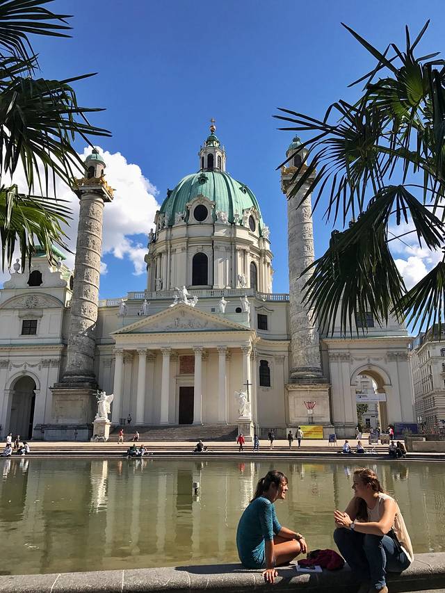 这是一座为黑死病而建的巴洛克式教堂。我住在这附近,路过好几次。当地人告诉我说,曾经有一阵,卡尔教堂这块区域是维也纳最不安全的地方,一到夜里,一些不法分子就会到这里来交易。现在的维也纳治安良好,这个现象不复存在。