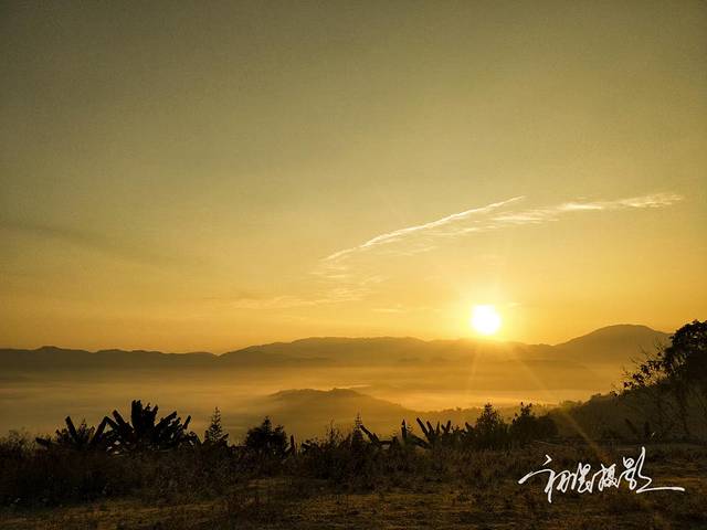早晨六点半从沧源县城自驾去到沧源县龙乃村,途中都是大雾,到半山腰才看见天空中的光芒,选好地点,在农户的茶地里面,摆好设备,一起见证日出。