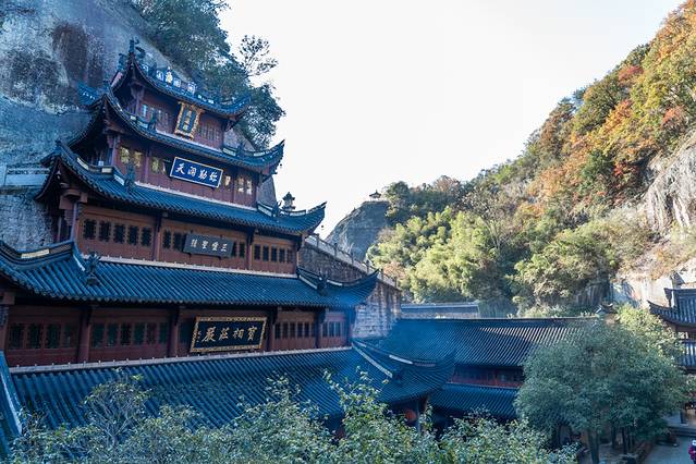 新昌大佛寺的自然胜境也是极为秀丽,诸如月峡、七寸头、仙譬岩、放生池、解开岩、翠浪亭、狻猊石、狮子亭、棋盘阁等等。如果是十一月下旬来这里,会发现这里也是层林尽染,秋色迷人,红枫、古银杏等等恣意绽放生命的色彩,是江南地区有名的赏秋胜地。