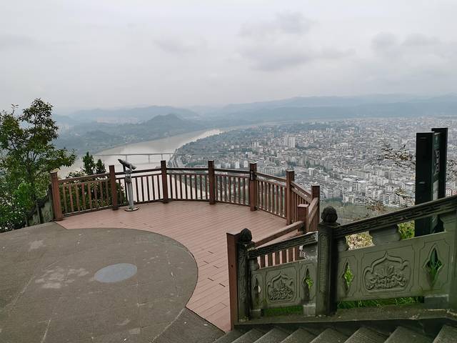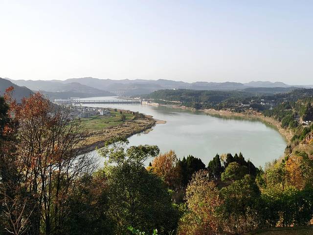 嘉陵江水被南边的砂山,也是案山的锦屏山护卫着往左(东)拐。前面有个索道风景观景台。