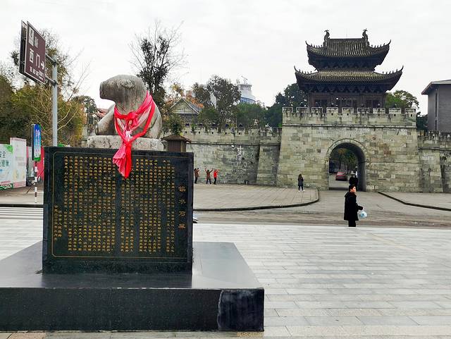 西门城楼和镇水犀牛,临犀牛码头。
