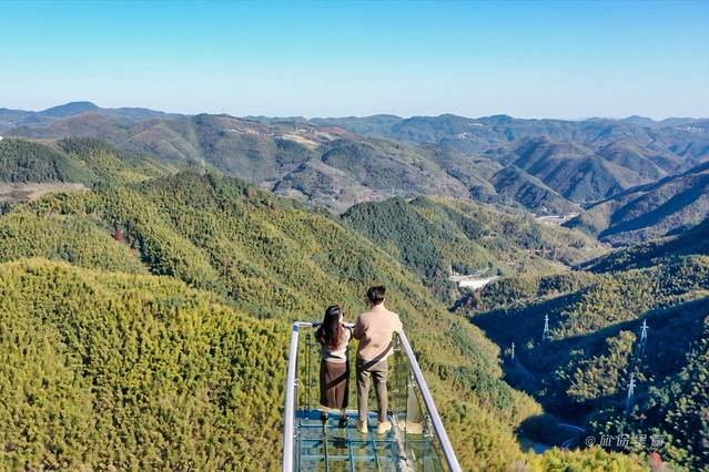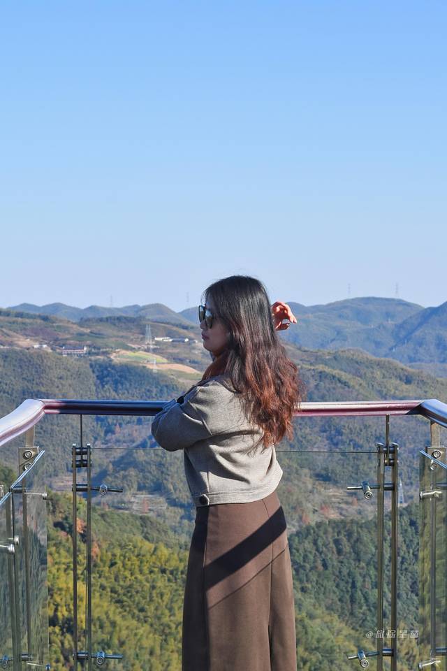 透明的玻璃栈道凸出去,要想过去拍照,对恐高的人还是有点儿挑战的。第一次我是扶着栏杆一步步挪的,后面走了几次就没那么怕了。