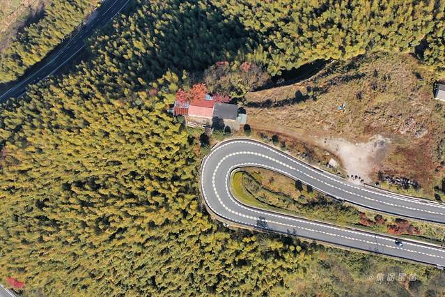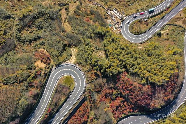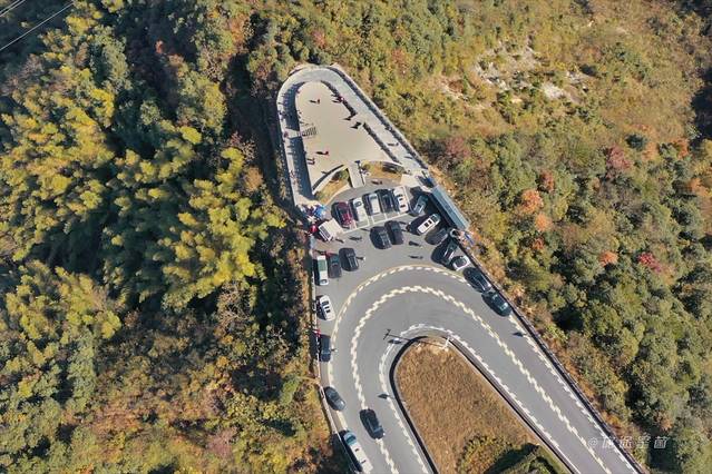 我们走的是回头路,当然又路过四明山观景台了,这次车少人少,那就再上去看看,正好阳光不刺眼,拿出无人机,看能不能拍出来180度的发卡弯。