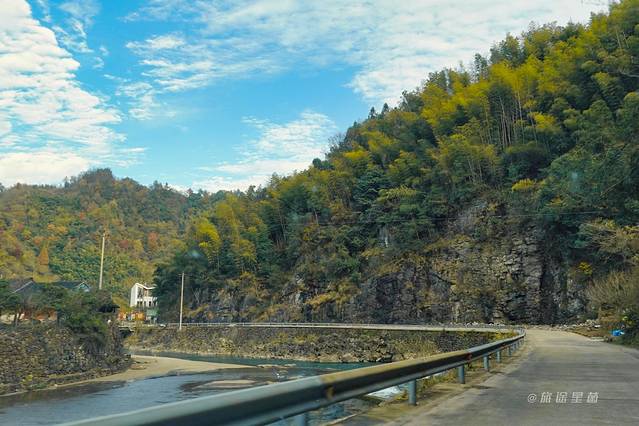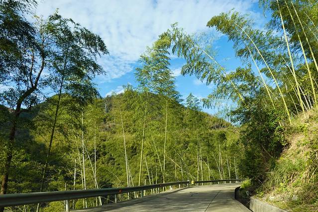 酒店离我想去的李家坑村很近,李家坑距丹山赤水风景区仅一公里,途中经过丹山赤水景区的指示牌,一路都是小路,我倒是觉得小路的景色比大路上的好太多了,外侧的竹子和内侧上山的其他植物在最高处“碰头儿”,像是一把天然遮阳伞,开车途中也不会无聊。