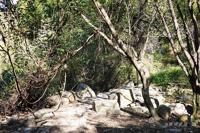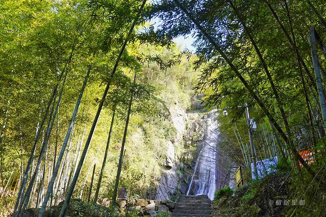 景区里很多竹子,拍出来也很好看,给人一种很凉快的感觉,夏天来还可以玩水呢。瀑布旁边还有石台阶往里延伸,难道也是徒步路线?我们没继续前行,开始了真正的返程。