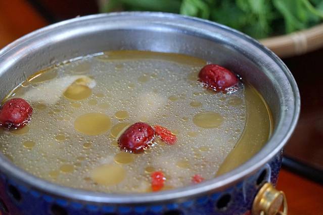 里面有青城山都江堰特色腊排骨、酥肉、响皮、鸡肉等荤菜,还有许多时蔬野菜。看起来就特别美味,满囗留香,汤汁也非常鲜。调料可以根据自己口味自行调料。
