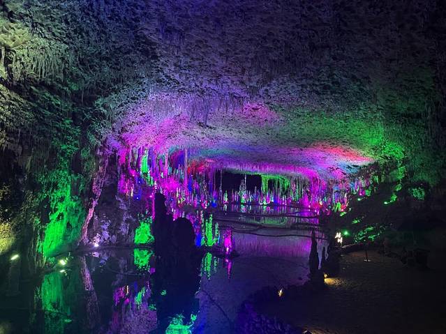 各种形状各异的石柱,石笋、钟乳石等,在灯光的加持下,无比绚丽,唯一美中不足的是,洞内整体环境偏暗,拍照特别考验技术,因此,视觉效果更震撼。