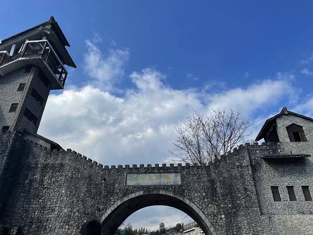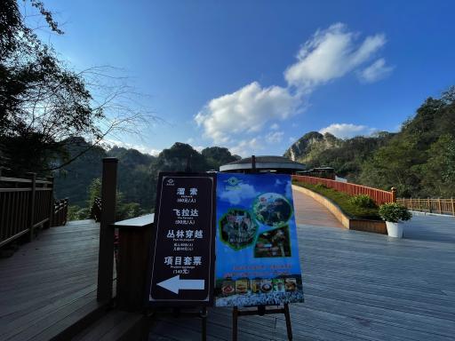 僰王殿广场飘扬的旗帜,像是在吹响僰族的号角一般。对了,你还可以来体验一下射箭和摔碗酒,僰王宫往下走,是一些景区的游玩项目,飞拉达、溜索、攀林等,如果你喜欢刺激探险,可以来体验体验哟~