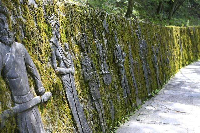 顺着到后山的索道,我们去往九皇山的后山,沿着长长的尔玛古道走去,石壁上刻画的是羌族历史变迁,我和男友都被这历史积淀所折服,一路走去也浏览了不少羌族故事。