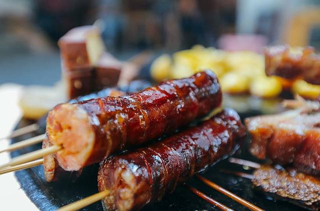 沿着游步道款步而上,男朋友倒是很体贴的把所有背包都提上了,一路而上,我们两个久未锻炼的身体难得得到这样的提升,感觉整个人都得到了升华,我们到达小吃街之后,小坐休息,吃上一根北川特色的腊肉香肠,这个和我平常吃的味道更香一些,我们走的时候还在景区买了几斤,回去也可以弄着吃。