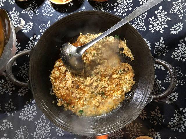 再来碗腊肉豆皮,这是开胃DIY的泡菜。辣椒很爽口