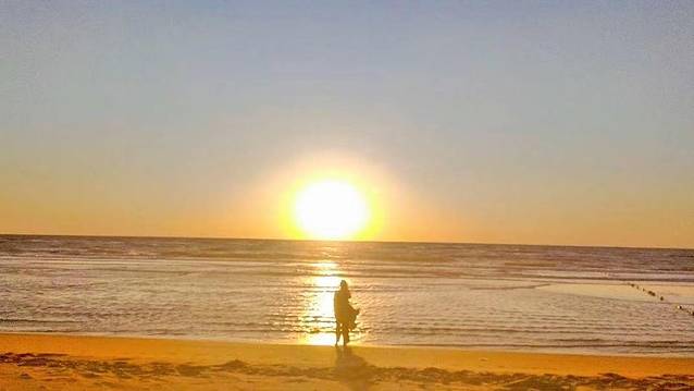 5.30🕓下楼,天已经微微亮了,太阳还没从海平面升起,海风真的很大,老妹又上楼拿了卫衣穿了长裤下来。