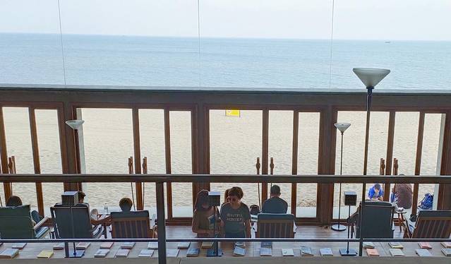 两层的图书馆,有售卖咖啡和看书的地方,书不多,不过这种边看书边看海的地方感觉很好📖~
