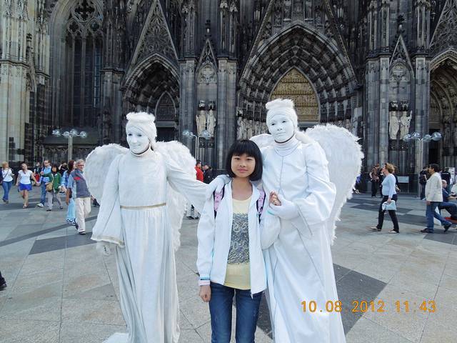 还有街头的艺术家们。当时的导游告诉我们,欧洲有很多音乐学院的学生,平时会在街头吹几曲“卖艺”,平民们一般也会给一些硬币,但他们和国内的乞丐是有本质区别的。当时我们还戏言,我们整个团吹一曲,午饭钱就有了。虽然最后没有时间实现,但是如果我在欧洲生活,我想,我会很享受这样的与人分享音乐的时光吧。