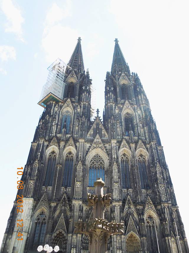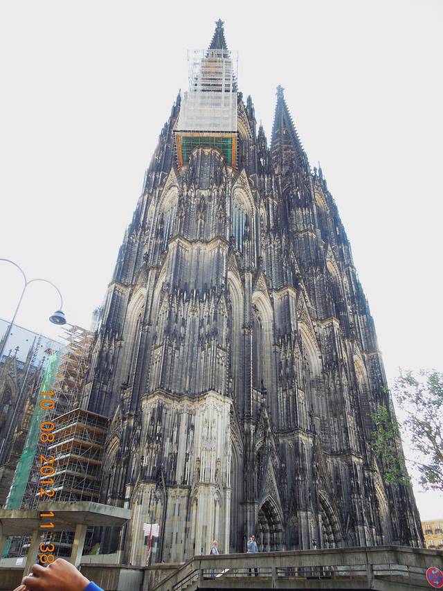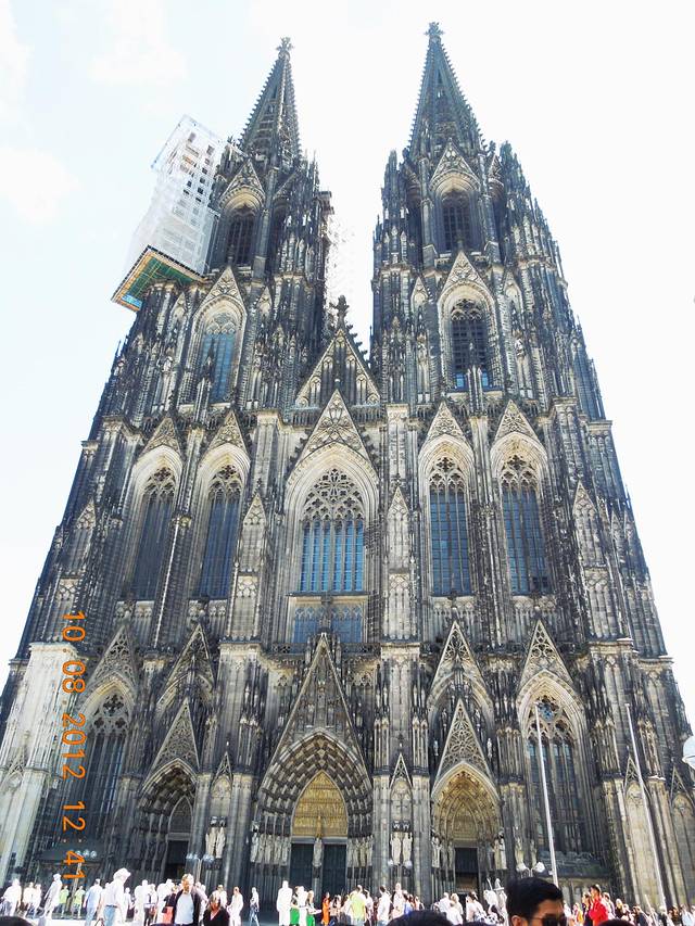 随后我们前往法兰克福大教堂。当时带我们的导游提醒我们,在这天及以后的几个国家,包都要背在前面,因为可能在你不经意间就不见了什么。导游曾经在德国留学,在法兰克福生活过一段时间,我明显感觉到了他不一样的情绪波动,前面几天他都不拍照,但这天,到了法兰克福大教堂,他也和我们一起拍了几张街景。