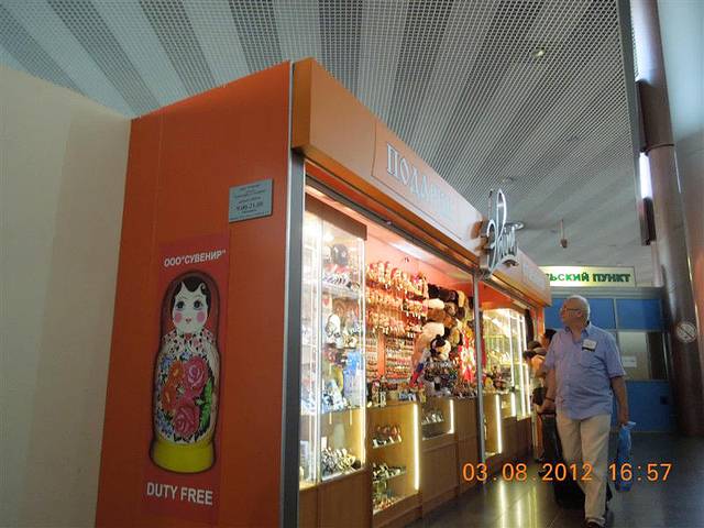 到了莫斯科机场后,首先映入眼帘的是五花八门的套娃,里面有很多卖套娃的店,看起来都特别精致。那时候我在广东还没怎么见过套娃,只是记得小时候在动画片见过,觉得特别好看,也很好玩,所以一下子看见如此琳琅满目的套娃很是激动。不过由于一路上都跟着老师走,就没有驻足啦,偷偷拍了张店铺留念hh