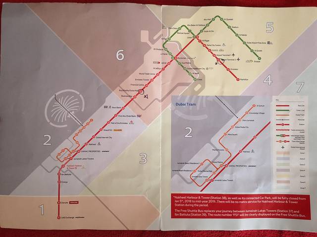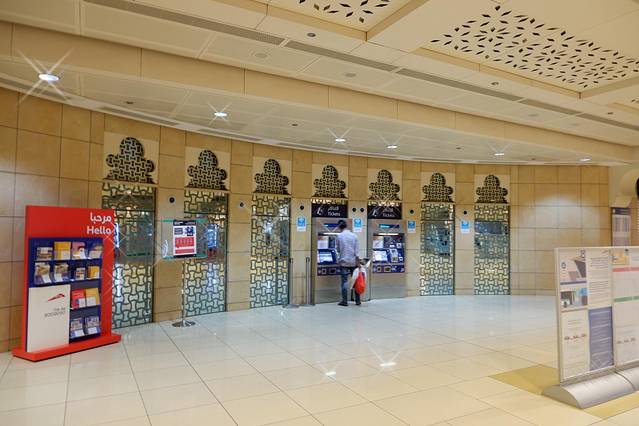 扶梯上去一个小小的窗口是售票处,旁边有个架子上面的免费地铁指南可以领,这个最好领一份,挺有用的,里面分别有阿拉伯文和英文标识的地铁线路图。