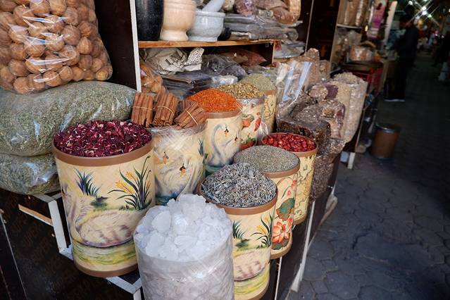 香料市场每个门脸前都摆放着一袋袋原材料,粗看之下认识的不多。