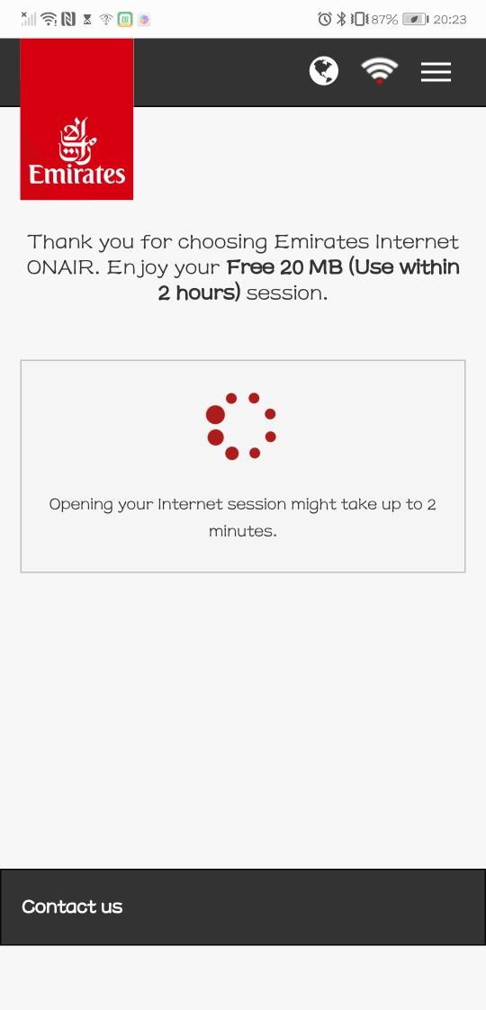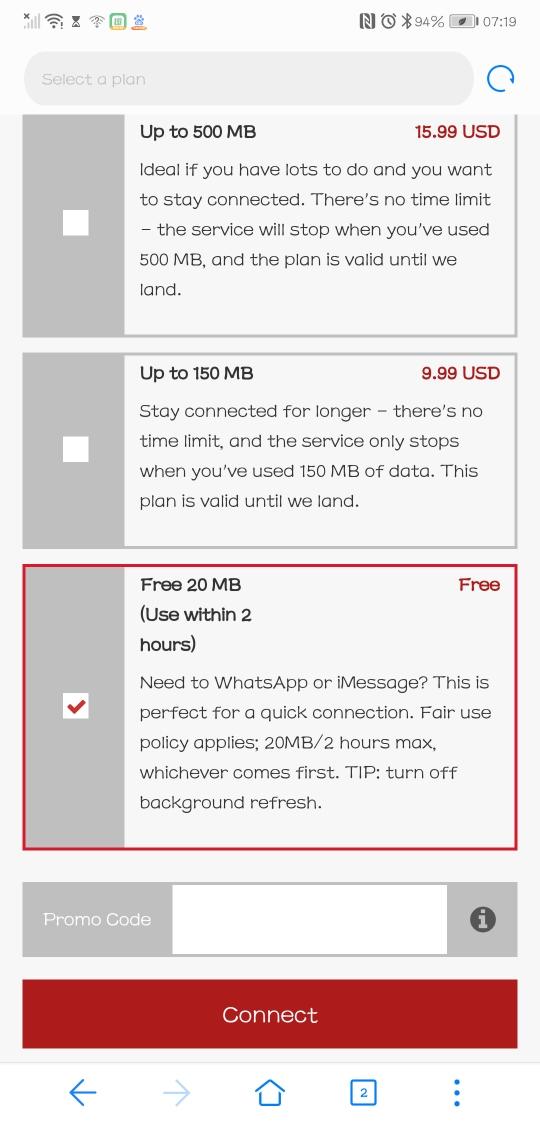 阿航上有免费WiFi,2小时之内20M流量,也可以花钱买流量,如上图。