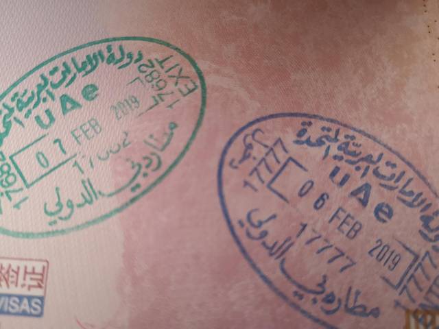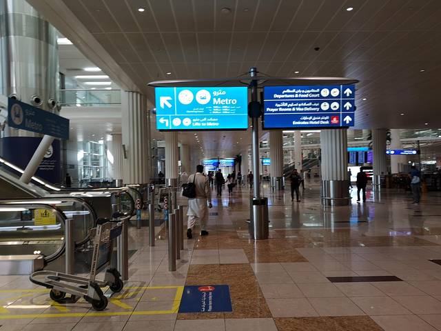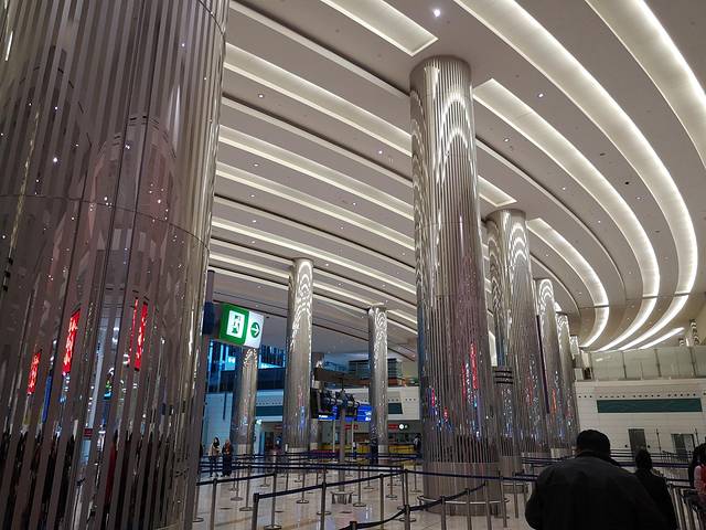 迪拜机场的入境大厅,拿着护照盖章过关,很简单。