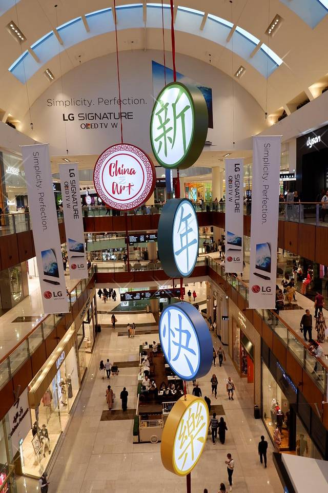 迪拜最不缺购物的地方,因为时间有限只去了迪拜Mall,据说阿联酋购物中心也很大。说到迪拜Mall,进去以后我还以为是中国的购物中心,商家为了迎合中国游客刻意营造中国年味的购物环境。