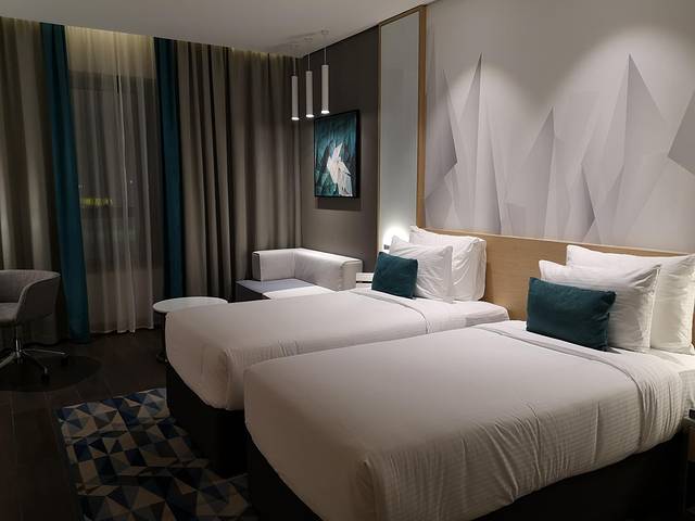 这家四星酒店是2018年新建的,房间比较大,床铺舒服干净。