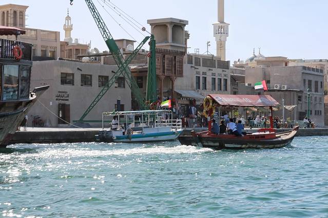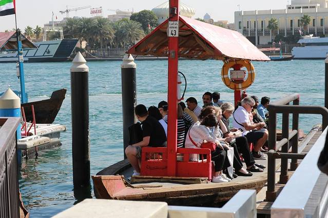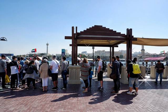 我在迪拜使用的第二种交通工具就是这种被称作“水上的士”的渡船,花上1迪拉姆就可以把你送到对岸。登船的码头,排队人群中不乏世界各地的游客。