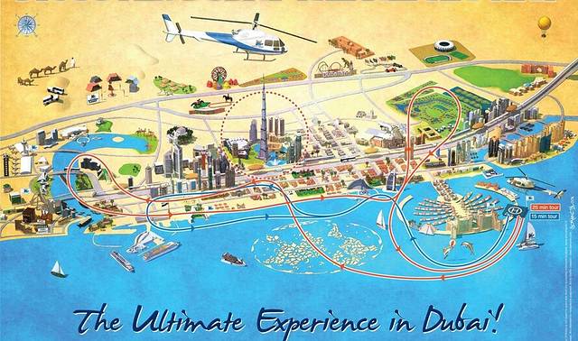 从图上可以看出,除了沙漠,迪拜主要景点都集中在波斯湾海岸线一带,呈带状排列。