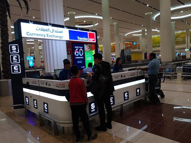 这个兑换处就在出境大厅的外面。服务员说离开时可以把用不完的迪拉姆再兑回美元。
