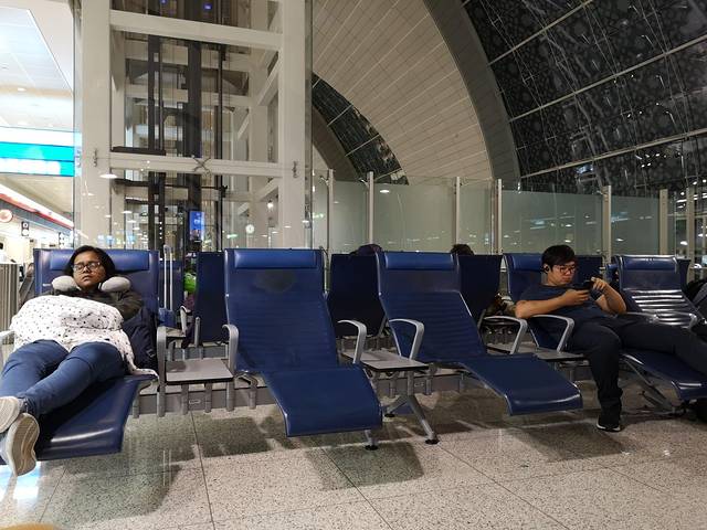 迪拜机场提供的这种躺椅挺人性化的,相对舒适一些,可以做短暂休息。