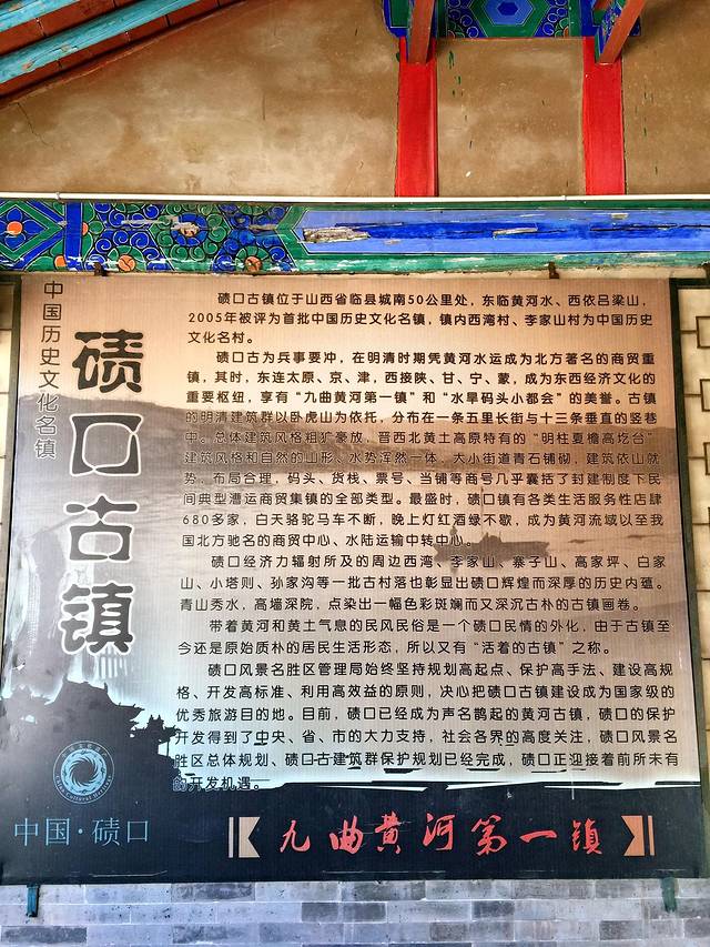 碛口古镇,位于山西省临县城南50公里处,依吕梁山襟黄河水,是中国历史文化名镇,镇内的西湾村是首批中国历史文化名村。据镇上黑龙庙清道光年间碑文记载,零星商贩不计,仅店铺字号就有20余家。其间,船筏在黄河里穿梭,驼铃在山谷间回荡。商贾云集,店铺林立,一街灯火,昼夜辉煌,接不完,填不满,正所谓&水旱码头小都会,九曲黄河第一镇&。