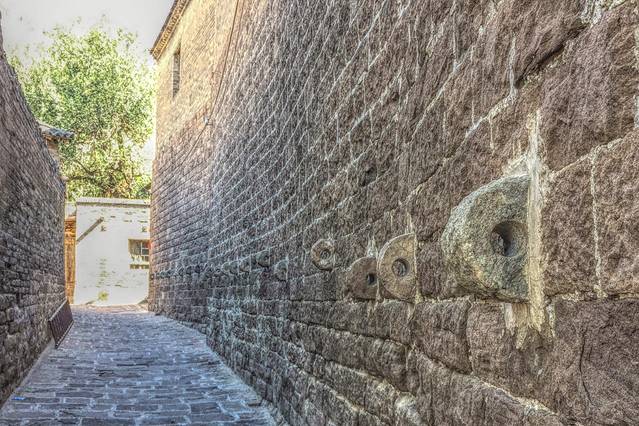 墙上的一排石耳是古时来往古镇的商贩用来拴他们的交通运输工具-马啊骆驼呀之类的,不难想象古镇过去的繁华景象。