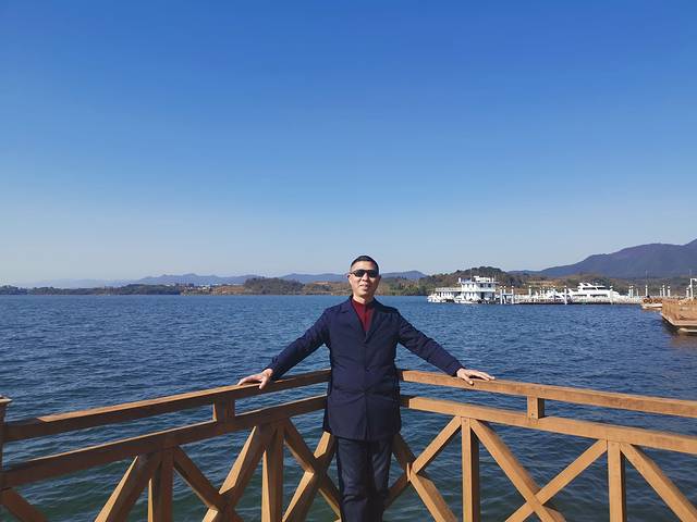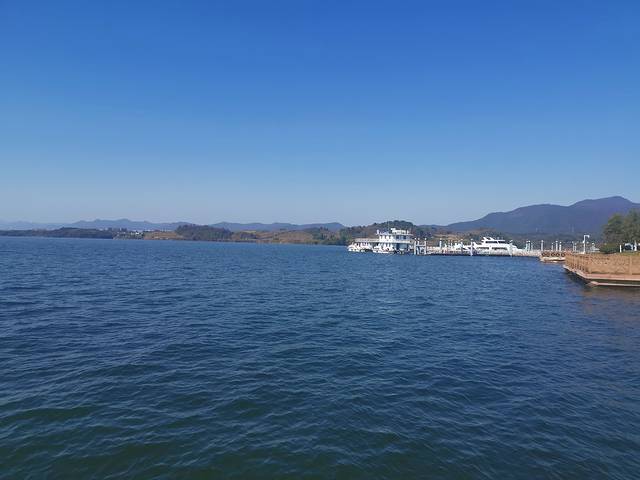 庐山西海巾口景区游客中心门口,金蓝湾。在这里可以坐游客快艇游览西海水世界, 分100元、180元、280元套票,可以体验碧海蓝天、阳光沙滩。