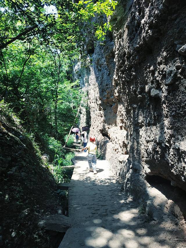 进入景区首先映入眼帘的是一个瀑布——九天瀑布,当然了 很多人吐槽是人工的。确实是人工。看着还行就行,干嘛杠那么多呢,出来玩 最重要的是心态,别纠结那么多。哈哈哈,继续走。说真的 在瀑布这里 真的很凉快啊,而且拍照也不错。继续走就是一个台阶上去被称作叠瀑,上去后,是一个相对小湖泊,沿着湖泊的边是紫藤长廊,这一块应该是整个景区比较适合拍照的地方,地势很平摊,整个长廊比较开阔,其实从这里望向整个小湖泊还是很美很宁静的。到处都是绿意盎然的,似乎在暗指我们的生活正在恢复生机。