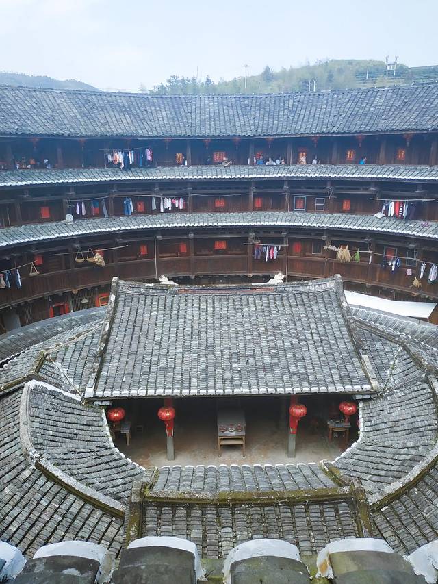回到酒店吃早餐赶上去云水谣的车。一路上导游跟我们说客家的渊源和文化,比如土客之争。和申请非物质文化遗产的一些东西。也提醒我们云水谣那边的土楼蚊虫较多、提前喷上防蚊虫的。从厦门出发到达云水谣车程约3.5个小时,其中一个小时是高速,剩下就是国道和盘山公路。我也是一个山区长大的人,但是福建这边的山和我们那边的山不一样,这边可以说真的就很南方,一个词秀美,一眼就有一种秀丽的感觉。到达景区已经中午,吃了团餐稍作休整就进入了土楼云水谣景区。这里说一下团餐是客家菜,稍清淡,沿海地带的菜比较讲究菜本身的鲜味。我还可以,比较吃得惯。进入景区后是由当地的客家人导游带队,最先到达土楼叫做怀远楼,高四层,内四圈,上上下下四百圈,圆套圆,圈套圈,历经沧桑三百年,这是当地人对土楼的一个总结。而土楼本身也是客家人在这里生活的一个缩影,住与防御。在那个年代,人类将智慧发挥那样一个高度,实属不易。土楼本身已经申遗,理论上是不可以上去,但是导游也提到给当地人5元钱就可以上去,不上去的话,前面的土楼博物馆可以免费上去的。不过我们基本上都有上去。踩着历经很多年的木板,遥想那些年从其他地方迁徙到了这里,扎根、生存、到壮大。历史的车轮就这样缓慢前行着。。土楼我们参观了好几个,分为圆形和方形。参观了土楼的制作,记得有一期爸爸去哪儿就是在这儿拍摄的。对了那些土楼至今还作为居住房屋有人在里面居住的。