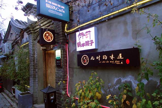 在这条胡同的游玩可以安排很久,虽然那一天下过雨,但是丝毫没有影响我的兴致。约上朋友,悠闲地在这条胡同里散步,偶然闻到咖啡的香气,抬眼望去,几个有意思的字让我们很是感兴趣:“脱单院子”,原来旁边的小巷子里还隐藏着一个咖啡店,小时候的味道这名字也很有怀旧的感觉。于是进去坐坐。