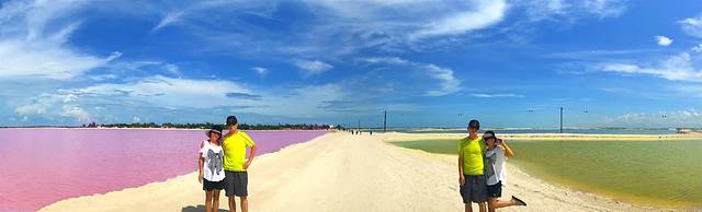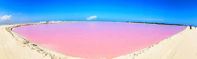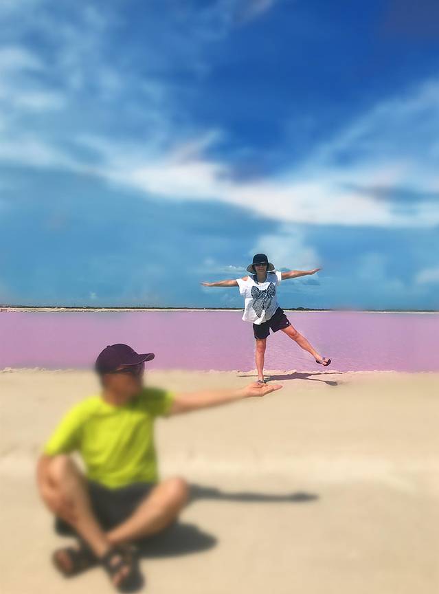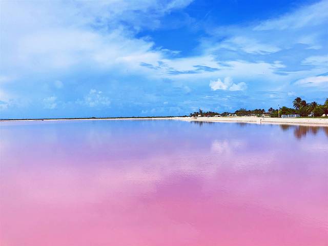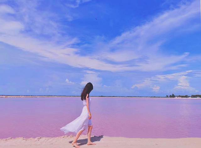 相比于深陷褪色风波的西澳粉红湖,尤卡坦的粉红湖要迷人许多。她就像一个变化莫测的小魔女,光照越强时她就粉嫩无比,阴天下雨时她便黯淡无光。