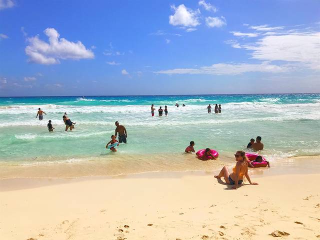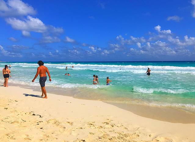 坎昆与美国毗邻,有美国的后花园之称。走在坎昆的街头与游客比肩接踵,以1美元等于23比索的豪迈来坎昆游乐的的美国人占有很大的比重。