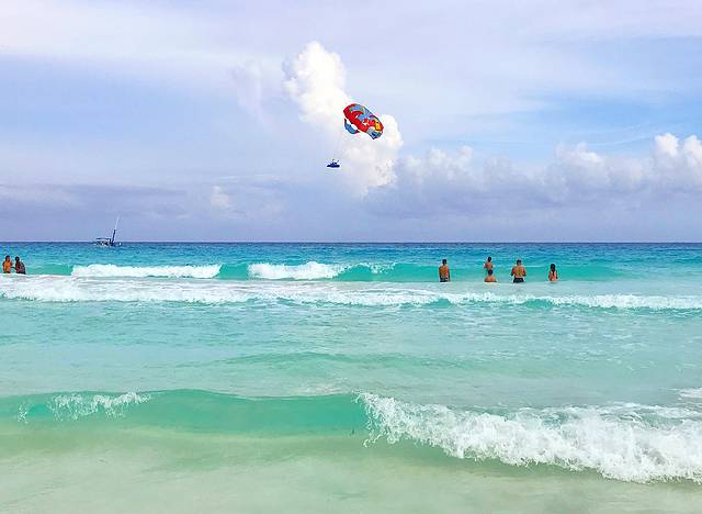 飞伞在海平面上盘旋,就像我们快乐的心,翱翔在坎昆的上空一圈又一圈......