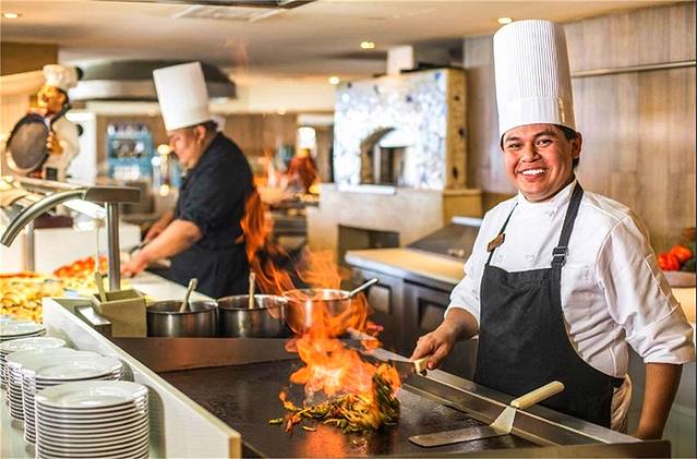 5、园内有五个餐厅(用餐费已包含在门票里),坐落在不同的位置,早晚只有最大的墨西哥风情餐厅提供自助餐,味道还算不错,品种也还算很多。只有中午时,五个餐厅会全部开门纳客,集食品之大成,任游客自由选择。