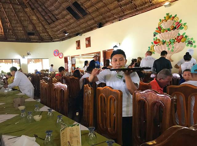 玛雅人是距今2500多年前生活在北美洲的古代印第安人的一族,人口最多时达1500万之巨。虽然后来他们中的绝大部分人突然的神秘消失了,但尤卡坦半岛上至今仍生活着玛雅人的后裔。也许是由于他们那一张张黄皮肤黑头发的亚洲脸吧(见下图端盘子的服务生),竟有野史说“玛雅人有中国人的血统”吃惊。