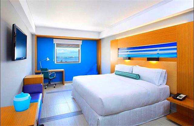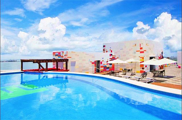 👉Aloft Cancun酒店位于酒店区。酒店内干净、整洁、空气清新,各种服务细心周到,距离附近的公共海滩仅300米左右,楼顶的花园以及露天游泳池环境优美,客房的装饰色彩艳丽, 周边公交车站、超市、餐厅等配套设施一应俱全,5星推荐。