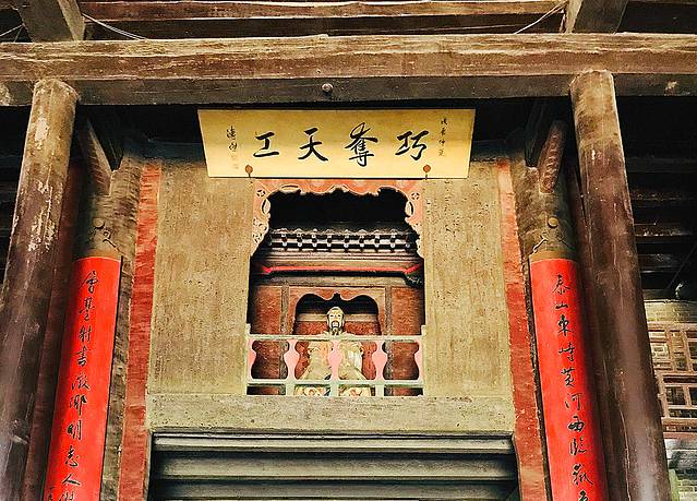 做城门之后,尚有许多余木,陈镛便命再建一座高高的更鼓楼,以便观敌瞭阵。正在工匠们苦思冥想不知更鼓楼为何物时,只见鲁班老人托着一个雄伟巍峨的木制小楼飘然而至,工匠们立即醍醐灌顶……1374年,更鼓楼动工兴建,仅用时三年便完成了搭建。后来,这个“鲁班相助搭建更鼓楼”的传闻被陈镛知道了,遂命人在一楼北檐下修一神龛,以纪念鲁班。龛上方悬挂一“巧夺天工”木质匾额,白底黑字,为溥杰后来所题。