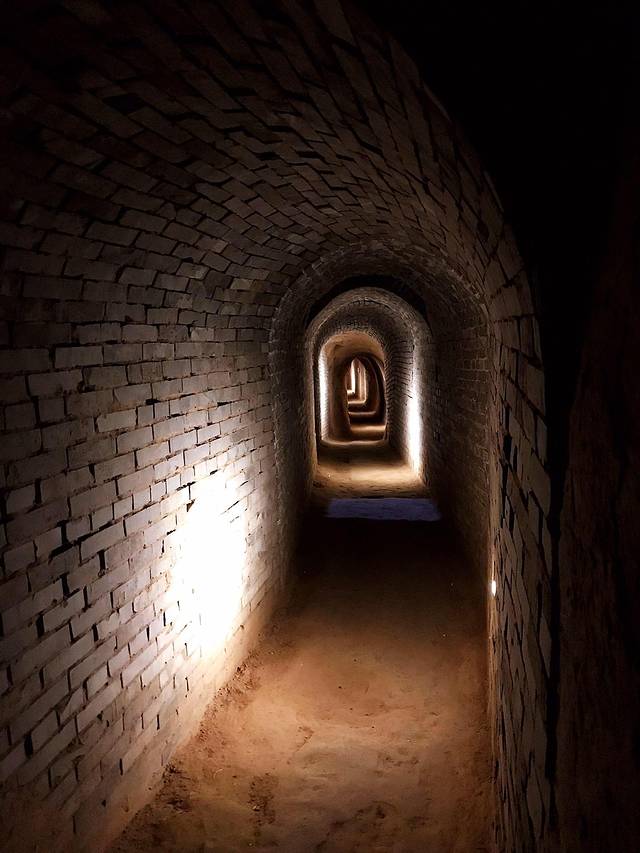 张壁古堡的地道入口在古堡之内,出口则在丛山峻岭之中,上下一共三层。只见地道迂回曲折、扑簌迷离,通风口、陷井、水井、藏兵洞、妇孺区、俘虏室、指挥室、马厩、粮仓等设施一应俱全,难怪被世人誉为世界建筑史上罕见的一座地下城池。