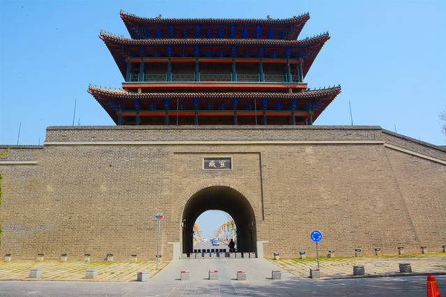 当时,聊城古城由土墙围挡,陈镛担心土城不堪一击,于是便废弃了土墙,修建了砖墙。巧的是,其间元朝南方的一个附属国不知元朝已亡,正从运河向元大都运输木材,毫无疑问,这批木材被陈镛截留,拿来做了城门。