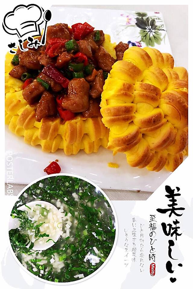 这是游过晋祠后,慕名来到“晋祠宾馆晋味斋”点的“花馍配蘑菇牛腩”。连菜带饭,色相好到不忍食用。山西,她的面食果然名不虚传。
