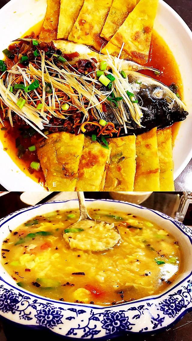 这是自驾游的第一餐,一路长途跋涉至太原,饥肠辘辘的我们误打误撞的进入“新茂烙饼拌汤村”。好接地气的店名,好大碟的鱼头配葱油饼,好大盆的疙瘩汤,好浓郁的山西风味,好实诚的老板(阻止了我们再想点两个菜的想法)……一直吃到撑,两人一共才花了56元。